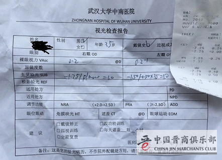 他来到武汉市中南医院做牙科手术,也检查了视力。医生说,他裸眼视力太差了,双眼都只有0.2,必须要戴眼镜,不然视力会越来越差。