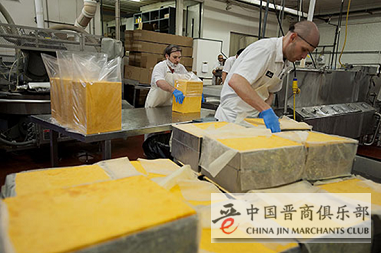 美国俄亥俄州柏林,海尼奶酪工厂里的工人在工作。
