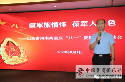为纪念建军93周年,讴歌伟大的人民军队。2020年8月1日下午,山西省河南商会组织召开了 “叙军旅情怀葆军人本色—— 庆‘八一’复转军人座谈会”。商会顾问中的军转干部和会员企业复转军人、商会班子成员等30余人参加。会议由复转军人、副秘书长白顺亭主持。