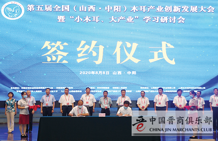 图为第五届全国(山西·中阳)木耳产业创新发展大会暨“小木耳、大产业”学习研讨会签约仪式现场。