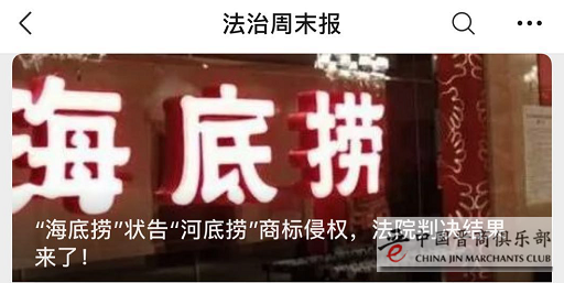 长沙市天心区法院审理后认为,“河底捞”标识与“海底捞”商标虽都有“底捞”二字,但在文字的整体字形方面,两者还是存在一定的差异,读音方面“河”字与“海”字,虽然拼音都是H开头,两者读音无任何相似性。