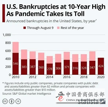 美国破产研究所(American Bankruptcy Institute)的数据,从2月中旬到7月31日,还仍然有800家小商业发起了第11章破产保护。