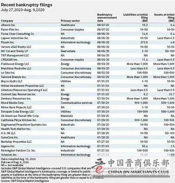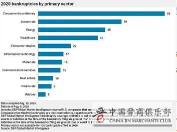 据埃菲社纽约8月13日报道,美国标准普尔全球市场情报公司在一份报告中指出:“在新冠肺炎疫情的背景下,2020年大量部门受到了破产的影响。但以消费者为中心的行业遭受的损害尤为严重。”这份报告包括了资产或债务超过200万美元(1美元约合人民币6.94元)的上市公司和超过1000万美元的私营企业。