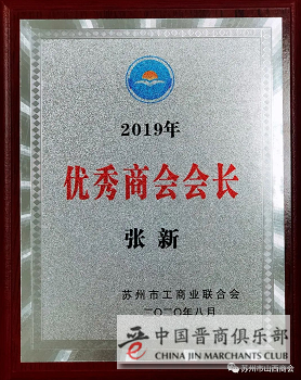 苏州市山西商会张新会长被评为2019年苏州市优秀商会会长