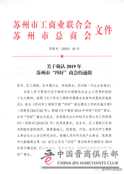 ·喜讯二:我商会被认定为2019年苏州市“四好”商会,受到表彰。