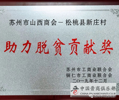 苏州市山西商会荣获“助力脱贫攻坚贡献奖”