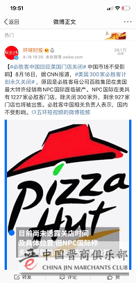 对于美国门店关闭,必胜客中国回应称:中国市场不受影响。