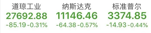 美联储会议纪要公布后,美股三大股指尾盘跳水,此前标普500和纳指均创下盘中新高。截至收盘,道指跌0.31%,报27692.88点;纳指跌0.57%,报11146.46点;标普500指数跌0.44%,报3374.85点。