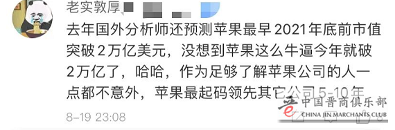 这是美股第一家市值突破2万亿美元的公司,也是第一家市值突破2万亿美元的美国公司。