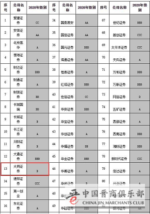 8月26日,中国证监会网站公布2020年证券公司分类评级结果。结果显示,2020年共有47家券商获A类评级,比去年多9家。其中,山西证券为A级,大同证券为B级。