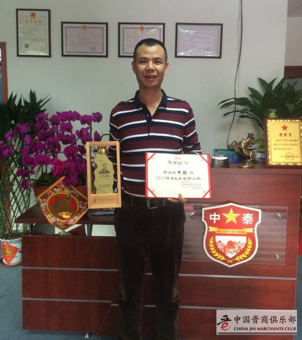广州市中泰保安服务有限公司总经理申强(山西省长治人)由广东省山西商会推荐,入选“2015百名优秀晋商人物”荣誉榜。