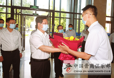 9月9日,教师节前夕,山西省委书记楼阳生来到山西大学看望慰问教学科研一线教师,向光电研究所所长张靖教授送上鲜花和节日祝福。山西日报记者李联军摄