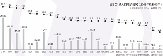 其实去年常住人口增长的前三名城市是杭州、深圳和广州,因为深圳不是省会城市,所以没有被列入前述数据统计表。