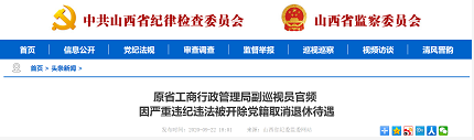 日前,经省委批准,省纪委监委对原省工商行政管理局副巡视员官频严重违纪违法问题进行了立案审查调查。