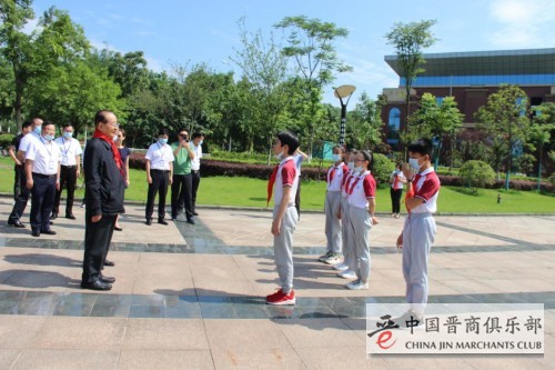 近日,曹志斌先生一行莅临“北大培文宜宾国际学校”参观指导。午时10:30分,曹志斌先生一行到达学校“仪门”,小学部少先队代表向曹爷爷表示欢迎,捧上鲜花,并为曹爷爷戴上红领巾。总校长王全中、小学部校长文涛、初中部校长刘泽红、高中部校长代富扬、校长助理周超等人出席接待。