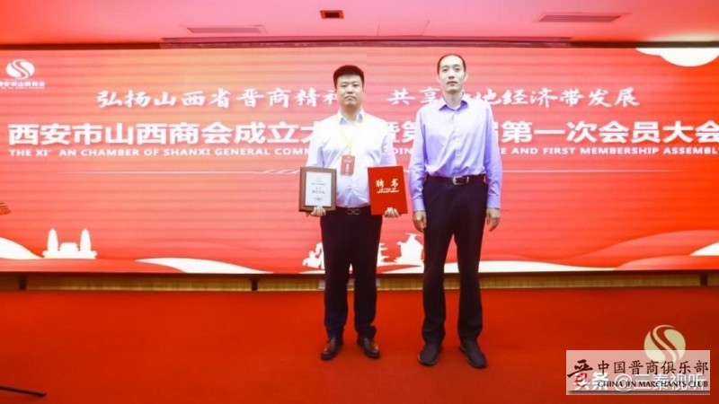 西安市山西商会会长张建军为副会长授牌并颁发聘书
