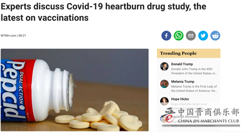 9月2日,哈特福德医疗保健中心的一份研究也表明,在该医疗中心的900名住院患者中,83人使用过法莫替丁。调查表明,服用过法莫替丁的患者,在医院死亡的可能性降低了45%,需要使用呼吸机的可能性也降低了48%。同时,使用法莫替丁的患者中,一些血液检测指标也降低了,而这些指标与新冠预后不佳有关。
