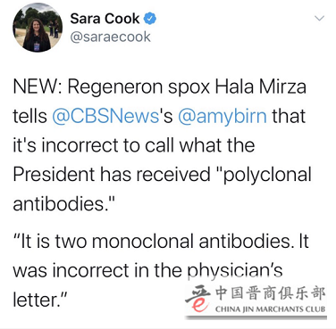 2、治疗方案中,特朗普使用了“多克隆”抗体鸡尾酒疗法、锌,维生素D,法莫替丁,褪黑素(脑白金),阿司匹林等6种药物。这款引发医学界争议的尚未批准的试验性药物,抗体鸡尾酒疗法,因大剂量的应用而引发人们的质疑。