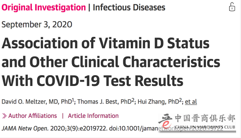 1.Meltzer DO, Best TJ, Zhang H, Vokes T, Arora V, Solway J. Association of Vitamin D Status and Other Clinical Characteristics With COVID-19 Test Results. JAMA Network Open. 2020;3(9):e2019722-e. doi: 10.1001/jamanetworkopen.2020.19722.