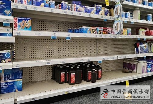 2020年3月9日,受新冠肺炎疫情影响,美国旧金山湾区一家药店的部分药品脱销。图|中新社