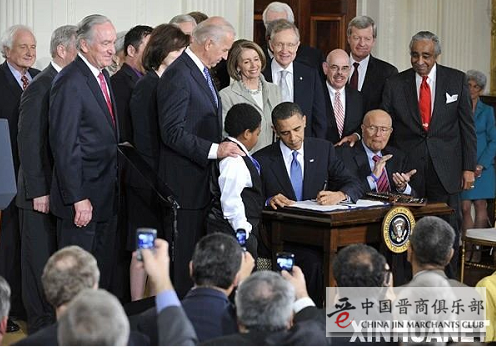 2010年3月,奥巴马签署医疗保险改革法案。图片来源:新华社