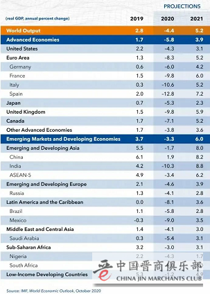国际货币基金组织(IMF)13日发布《世界经济展望报告》,预计2020年全球经济将萎缩4.4%;中国经济将增长1.9%,是全球唯一实现正增长的主要经济体。