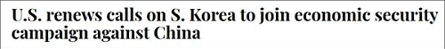 美国再次要求韩国加入对抗中国的“经济安全战”,韩联社报道截图
