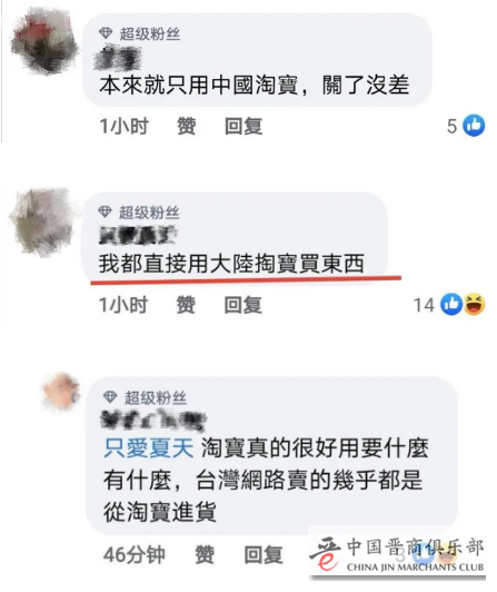 在社交平台上,不少台湾网友看到消息后表示,对自己并没有什么影响,本来就是直接用大陆淘宝买东西。