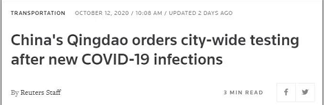 比利时最大的荷兰语媒体《最新消息报》10月12日在其网站首屏显要位置重点报道了此次青岛疫情,该报驻华记者莉恩·维尔韦克坦言:“也许我们真的可以从中国的快速反应中学到点什么。”