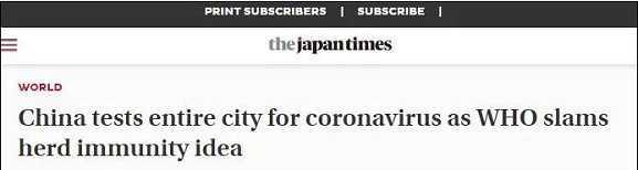 《日本时报》直言,青岛的严格普检与一些欧美国家鼓吹的“群体免疫”以及“笨拙”的防疫工作形成强烈对比。