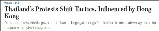 泰国示威改变战术,受到香港示威活动影响 截图:《华尔街日报》