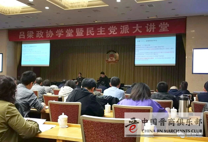 10月14日上午,由吕梁市政协和民建吕梁市委组织举办,清华大学经济管理学院副教授杨思群讲授的“吕梁政协学堂暨民主党派大讲堂”在吕梁宾馆举办。吕梁市政协副主席、市工商联主席郝金光主持会议。全市50余名民营企业家参加。
