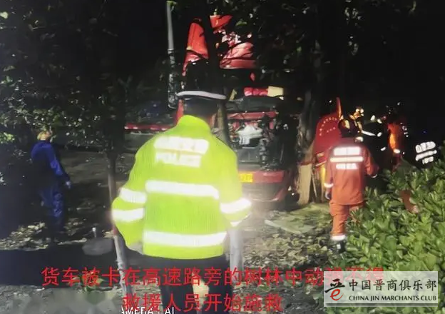 近日,一辆重型半挂牵引货车沿G521国道由西向东行至38公里+400米处,因雨天路面湿滑,车速较快,操作失误,造成车辆失控,驶出路面撞坏路边多棵树木,驾驶人被卡在驾驶室内。