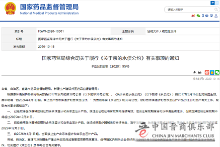 国家药监局综合司关于履行《关于汞的水俣公约》有关事项的通知