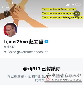 10月22日,黄之锋在脸书发文,声称自己在另一社交媒体平台推特上“被赵立坚封锁了(拉黑)”,并宣称赵立坚是在“封锁香港抗争者”。他还大言不惭地要求赵立坚离开美国的社交媒体平台,回到内地的微博上,“接受小粉红的拥戴”。
