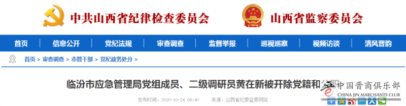 日前,临汾市纪委监委对临汾市应急管理局党组成员、二级调研员黄在新严重违纪违法问题进行了立案审查调查。