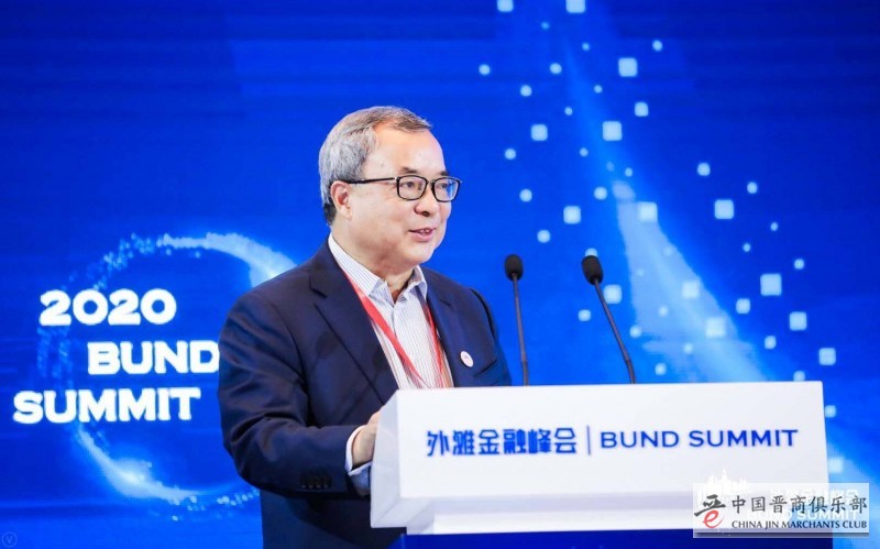 (十三届全国政协经济委员会主任尚福林致辞。图片来源:外滩金融峰会)