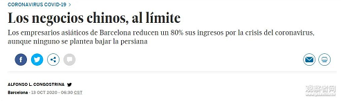 而作为西班牙企业代表之一的华商,也受到了疫情的影响。10月13日《国家报》采访了巴塞罗那的几位华商,他们的生意都陷入艰难的境地,但都努力坚持。他们试图与业主协商租金、用临时工人变更计划留住员工。在疫情面前,他们说自己绝不放弃。其中一家中餐厅老板的女儿表示,1月份华人听说在中国发生疫情以后,客人就下降了六成。有12名员工辞职,因为他们很多人的孩子都还很小,他们来上班时要乘地铁,因为害怕在上班路上被感染,就不干了。3月初,当疫情开始席卷西班牙,她们家也非常害怕,所以一度把餐厅给关了。