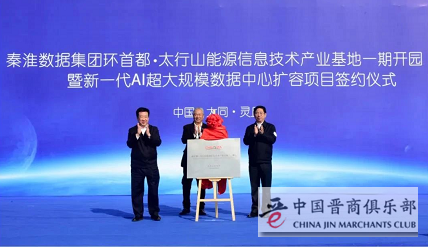 10月25日,环首都·太行山能源信息技术产业基地开园暨扩容项目投资协议签约活动在灵丘县举行,省委常委、大同市委书记张吉福,市委副书记、市长武宏文,秦淮数据集团创始人、首席执行官居静共同为基地新一期项目建成运营揭牌。