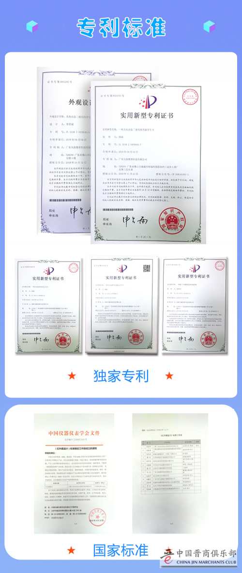 依托自主研发的创新能力,天波教育智能物联网测温系列产品已成功申请超过100项发明专利,确保产品质量的同时保障产品不被山寨侵权,提供全方位的高新技术产品。同时,天波教育作为国家标准(红外额温计)标准制工作组成员,亦将进一步呈献红外测温的产品及技术服务。
