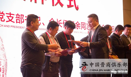 商会监事长兼副会长付卫亮宣读了《山西省山东商会关于通过拟任副会长转正及相关人员职务调整决议》(草案),按照《商会章程》提请会议表决,全场所有的新晋副会长得到了有表决权的在职会长们的一致举手表决通过。商会会长伊纪余在主席台上,给每位副会长一一授牌。