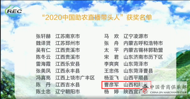 山河醋业有限公司总经理曹彦军先生荣获“2020中国助农直播带头人”荣誉称号!