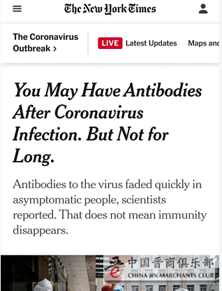 世界卫生组织也发表科学简报,称“没有证据”能证明感染新冠后产生的抗体能保护人体免于第二次感染。