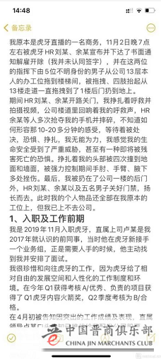 11月7日午间消息,一位自称“虎牙被抬当事人”的用户某社交平台发声,称其遭受直系领导的冷暴力导致抑郁,现被公司暴力辞退。在拒绝签署辞退书后,HR带着5个人将其抬出了公司,也无法带走个人物品,拖抬过程中头部受到多次撞击导致心理和身体双重受挫。