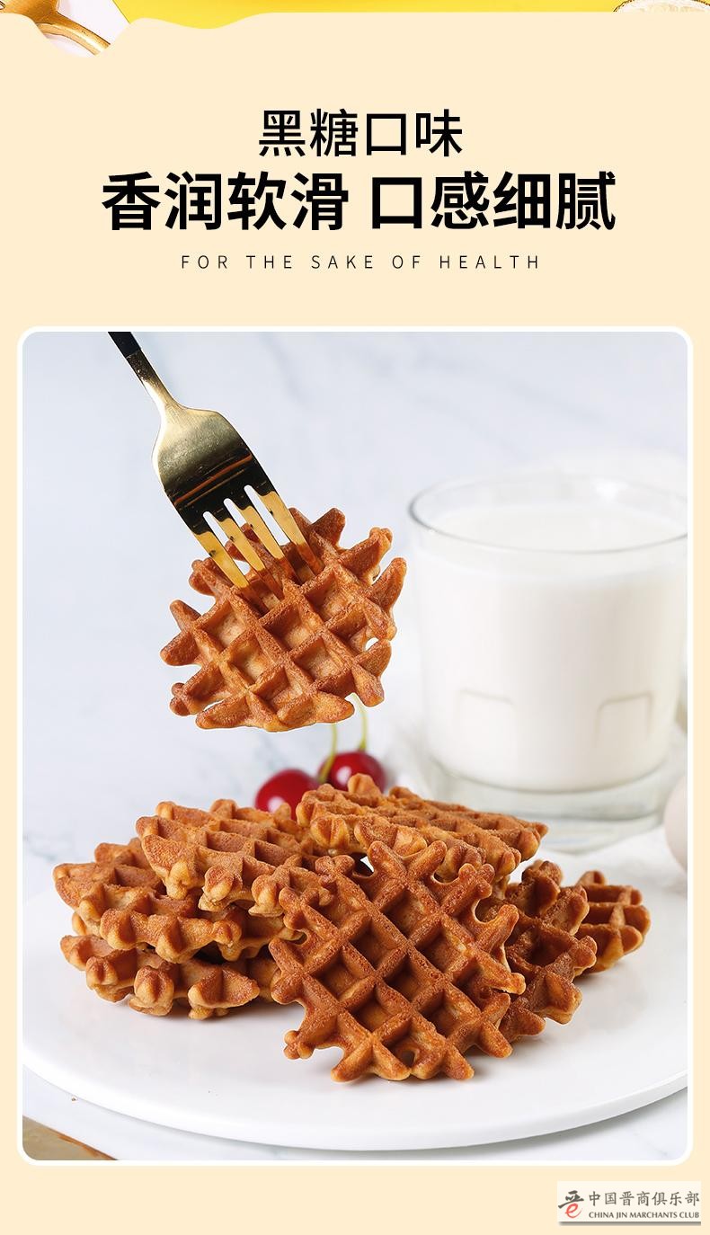 古法黑糖遇上香软华夫,更细腻的口感,更Q弹的体验。精选天然食材,华夫饼健康有料,做到口口香浓回味,带来味觉享受。黄金配比,香甜不腻。黑糖味道满口留香,一口忘不掉的营养美味!