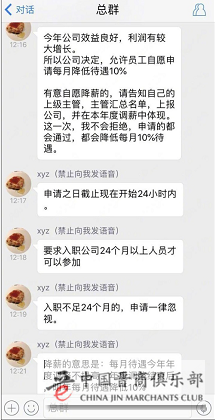 这次的内容是,如果申请自愿降薪的人在3天内站出来声明自己是非自愿的,则奖励3万元。