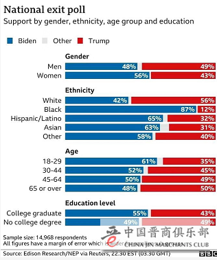 而特朗普也非常配合,一直旗帜鲜明地说这些抗议骚乱的人是“罪犯和暴徒”,应该去镇压。特朗普虽然是个疯子,但在黑命贵运动中,还是守住了美国的传统价值观。而不像民主党只要能拿到选票,可以无底线去讨好黑人、同性恋、偷渡移民、吸毒的瘾君子。但黑人手里有大量选票,特朗普输掉大选就顺理成章了。民意调查中,虽然特朗普得到了56%的白人选票,但87%的黑人都支持拜登。