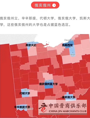 这次选举中,出现了一个很有意思的现象。特朗普不仅是农村包围城市,而且是农村包围大学城。从俄亥俄州的选举地图上就可以看得很清楚,几所主要大学所在的地区都不支持特朗普。