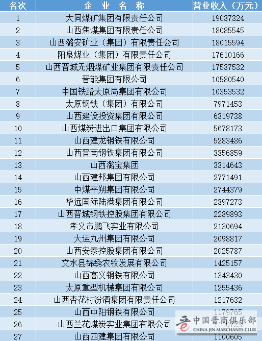 近日,山西企联携手山西财经大学对外发布了山西企业100强排行榜(企业名称和数据均为2019年统计),入围门槛16.48亿元。