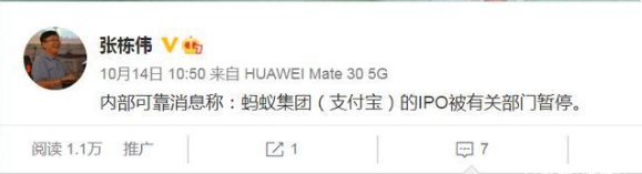 虽然我本人早在10月14日,就发过消息说有传闻会叫停蚂蚁集团的上市,但直到IPO前夜正式公告发出,期间还是充满了变数。